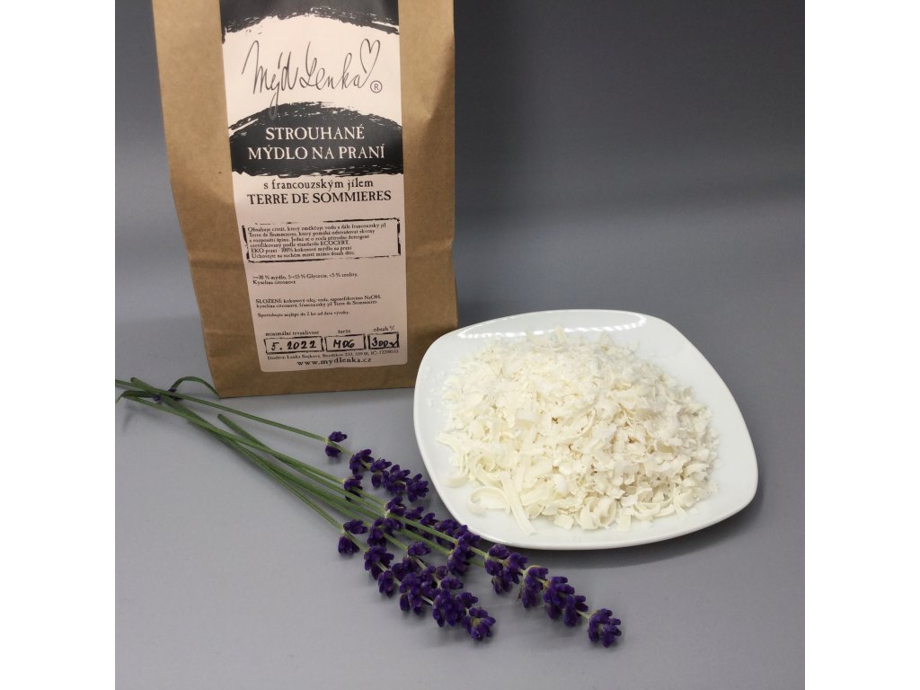 Strouhané mýdlo na praní MýdLenka s francouzským jílem Terre de Sommiéres