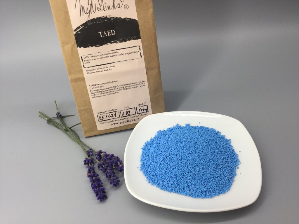 TAED (tetraacetylethylendiamin) používám jako aktivátor perkarbonátu sodného při praní na nižší teploty, obvykle do 60 °C. Právě díky němu se perkarbonát aktivuje dříve a bělicí a čisticí účinek funguje i tam, kde by jinak nestačil.