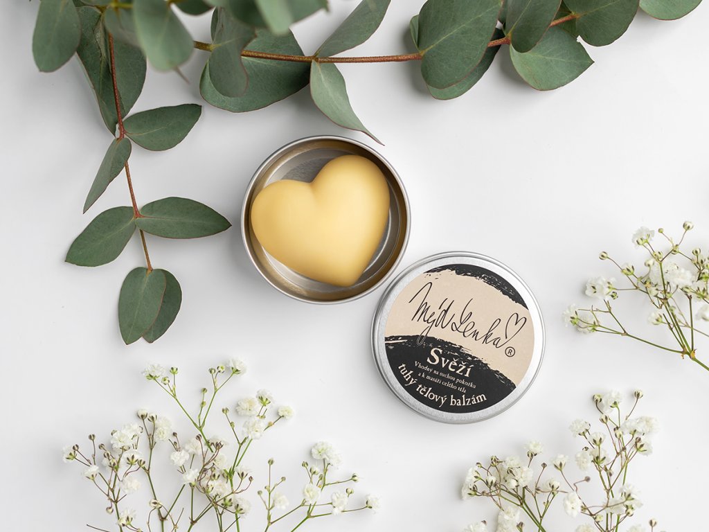 Tuhý tělový balzám Svěží se při dotyku s pokožkou začne jemně rozpouštět a zanechá ji hebkou, vláčnou a hýčkanou. Vyzkoušej ho i na masáže, už nikdy nebudeš chtít jinak.